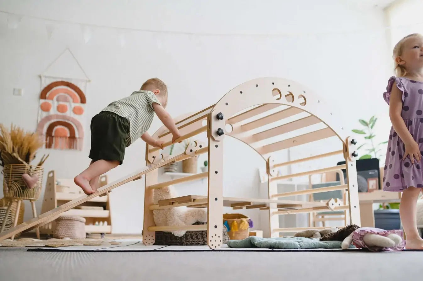 Ein Pikler Spielraum ist ein speziell gestalteter Bereich, der Kindern eine sichere Umgebung bietet, in der sie ihre motorischen Fähigkeiten durch freies Spiel und eigenständige Bewegungen entwickeln können. Er eignet sich besonders für Kinder im Alter von 0 bis 6 Jahren, die in einem sicheren und anregenden Umfeld ihre natürliche Neugier und Bewegungsfreude ausleben können.