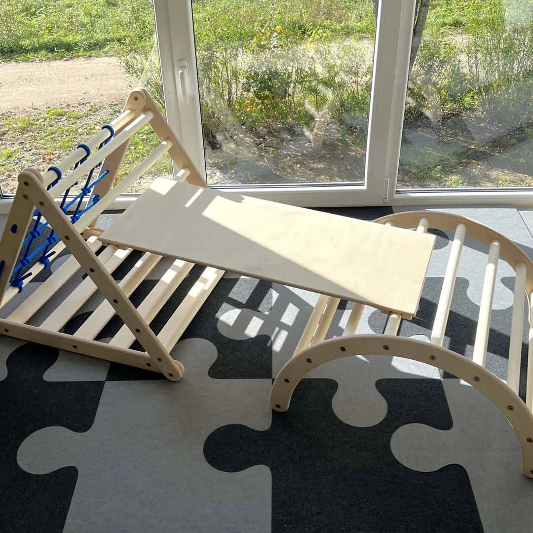 Alle Teile sind leicht aufzubauen und das ganze Kletterset ist vielseitig einsetzbar. Gerade für die Grobmotorik perfekt aber auch für kühle Tage ideal, um indoor sichere Klettermöglichkeiten zu schaffen.