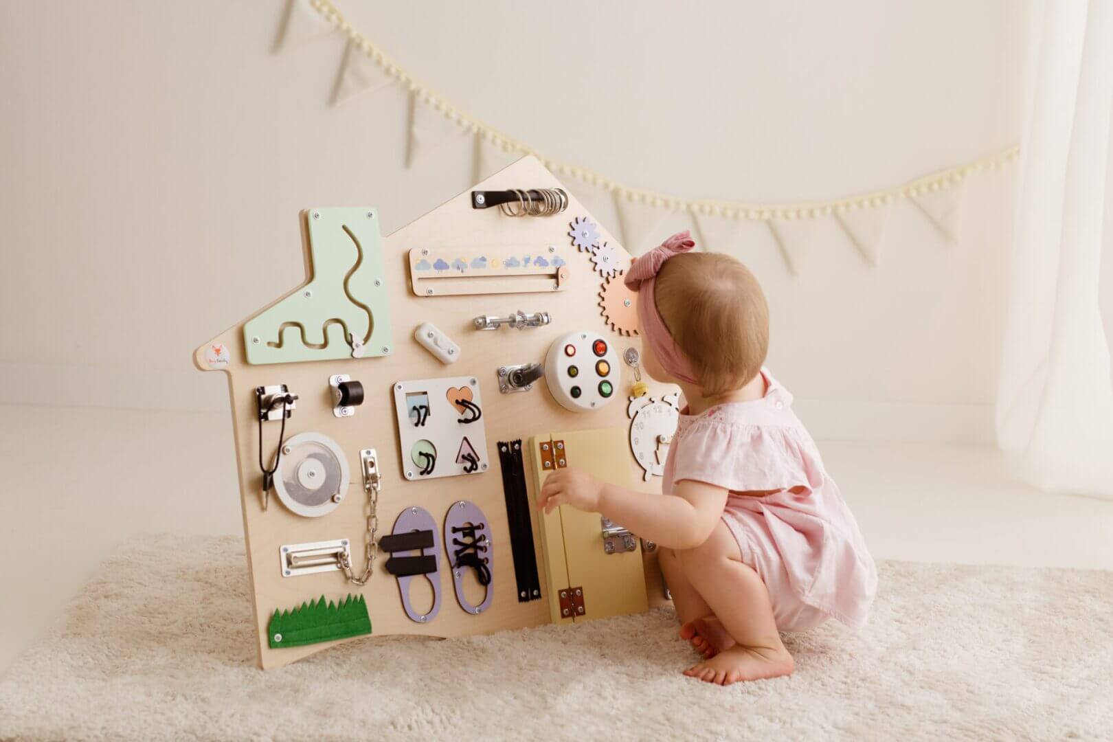 While your enthusiastic baby plays with motor skills walls, you can enjoy a cup of hot coffee.