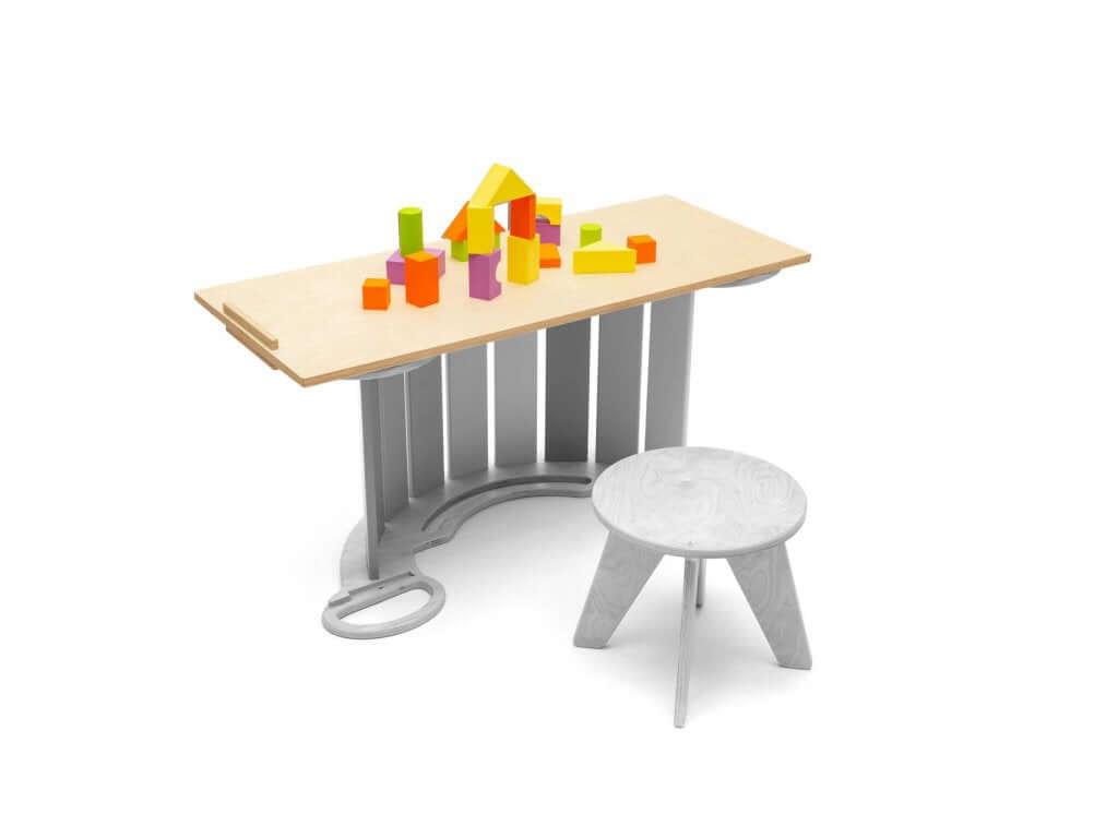 Het bord kan ook worden veranderd in een tafeltje waar uw kind kan spelen en knutselen.