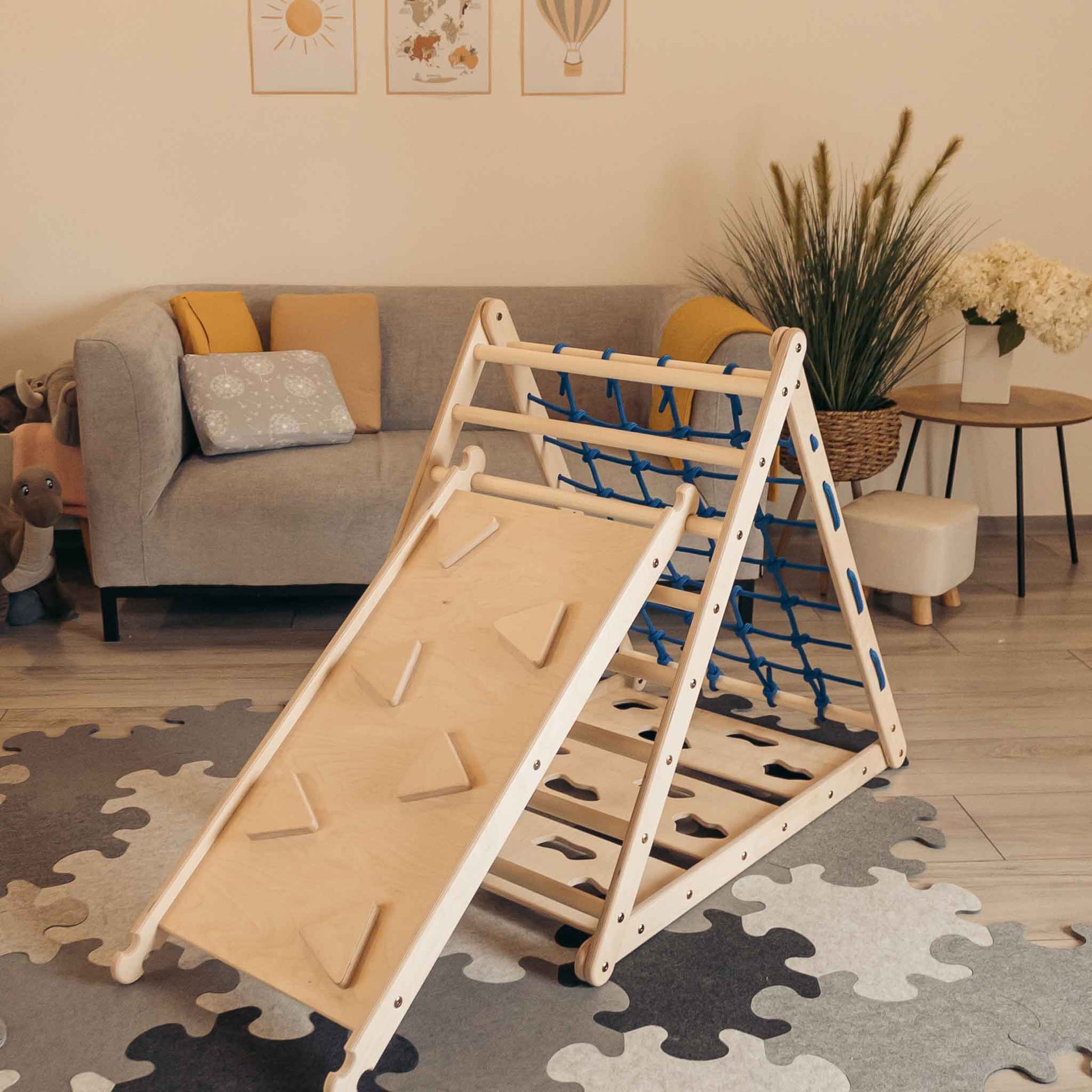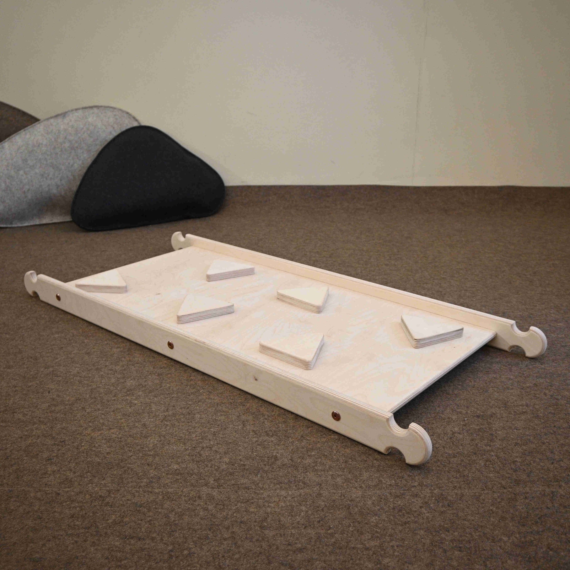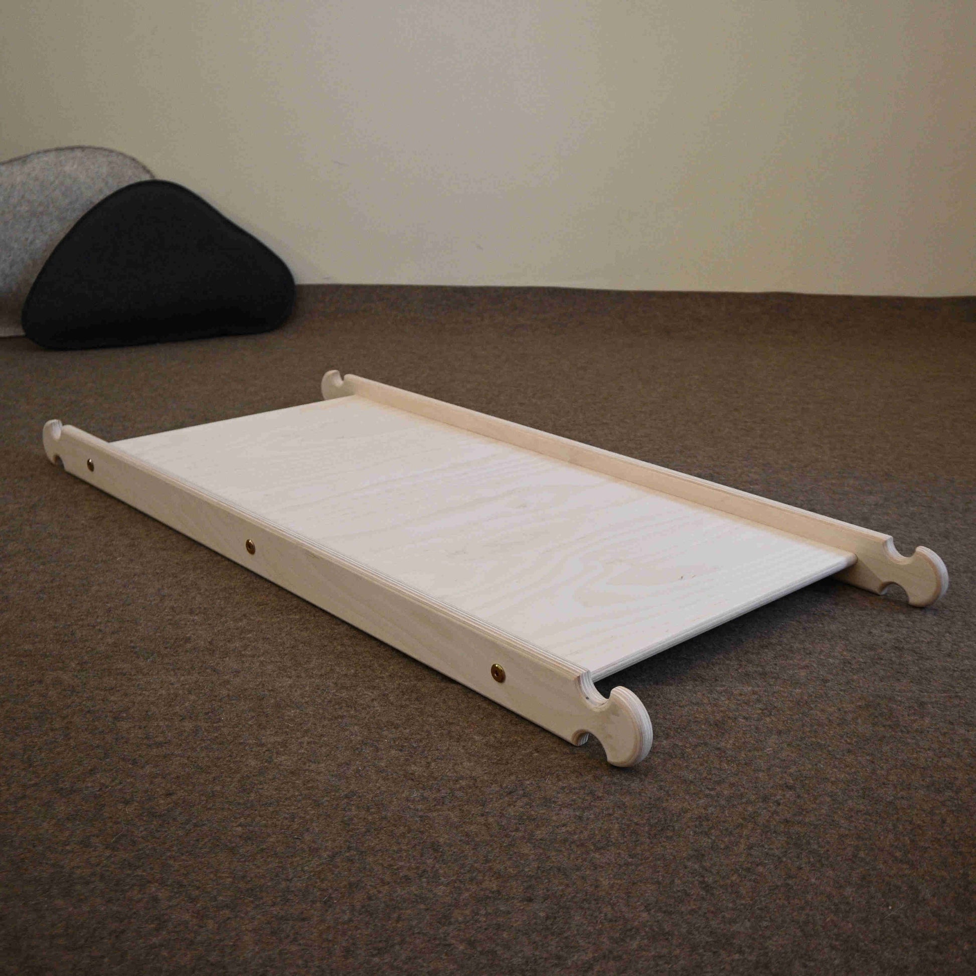 Deze klimplankglijbaan kun je combineren met onze klimdriehoeken van Climbuptoy . Dit bord is aan twee kanten te gebruiken, de ene kant is een klimplank en de andere kant is een glijplank.