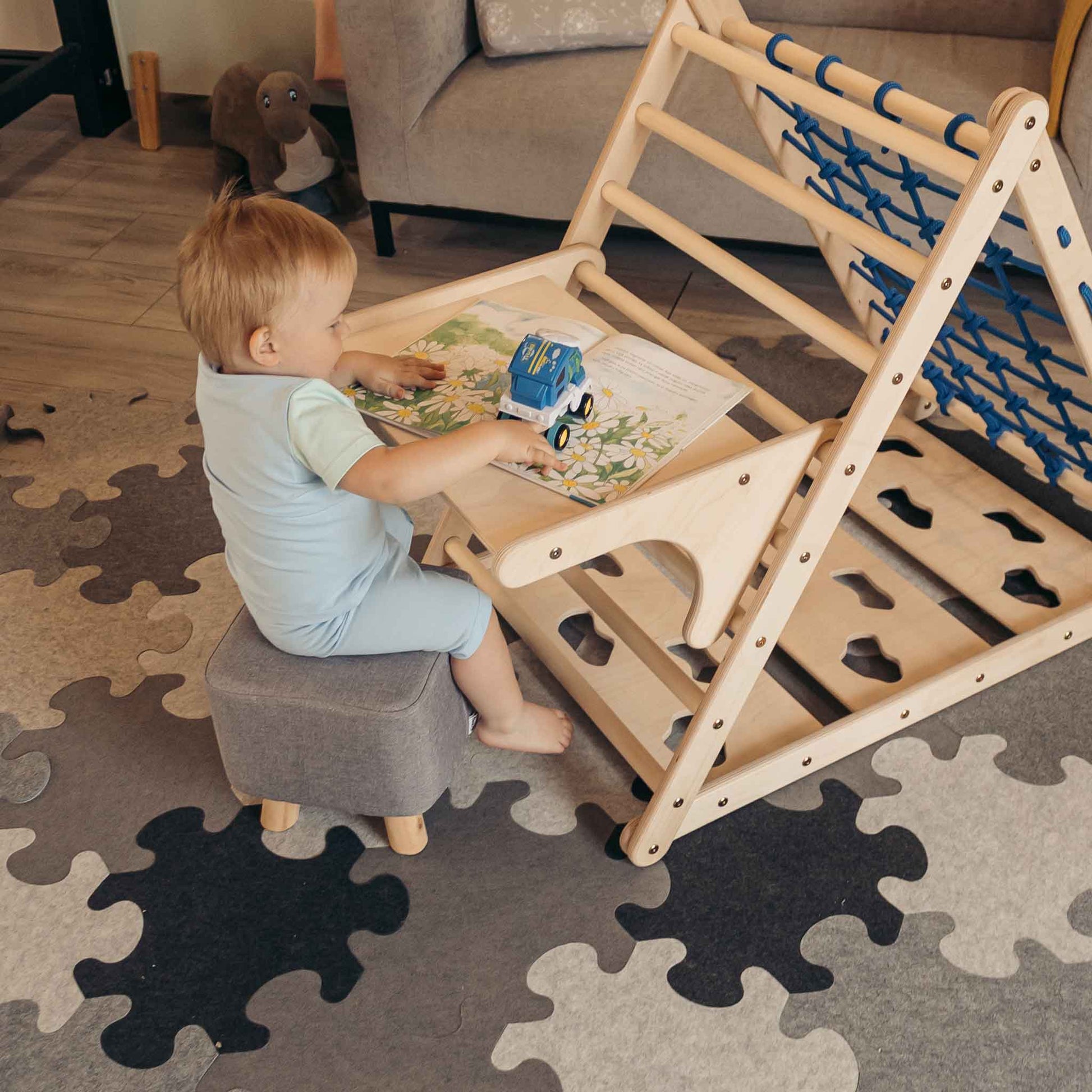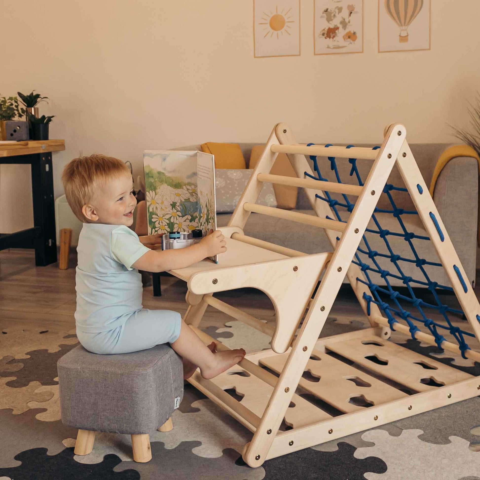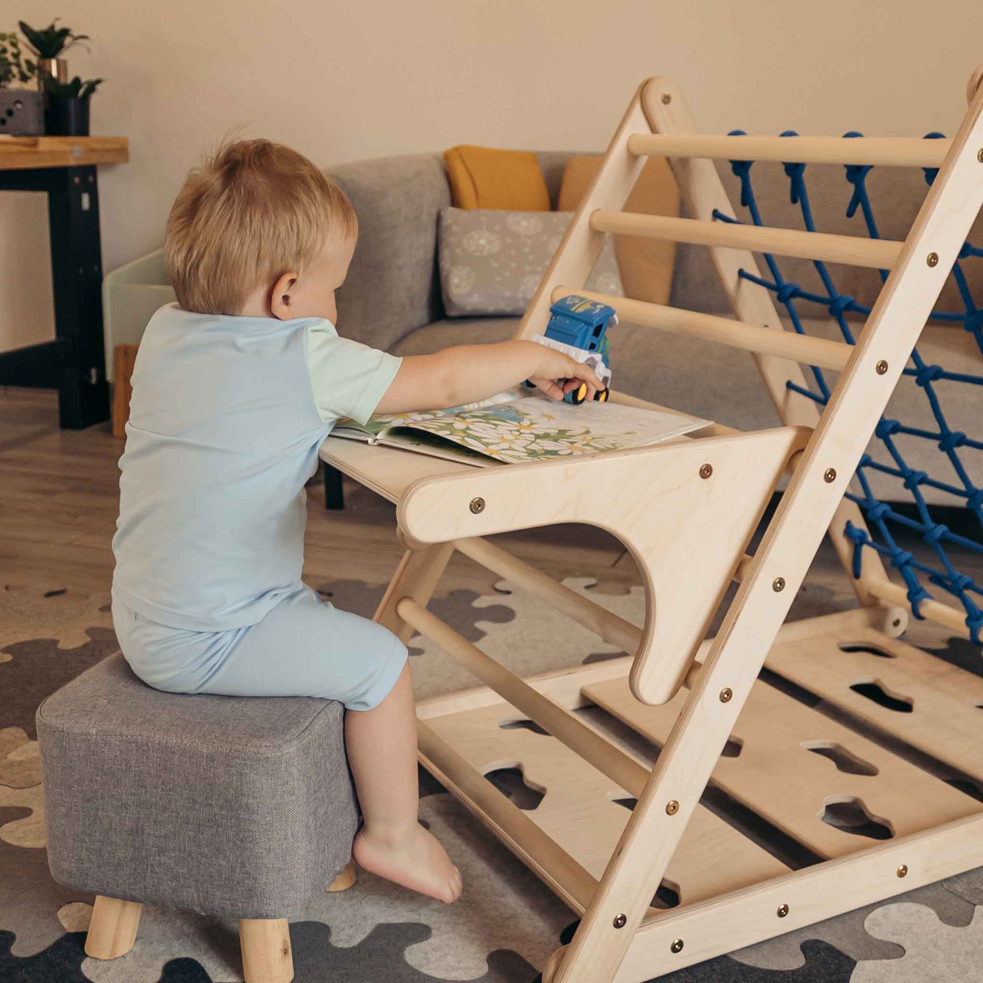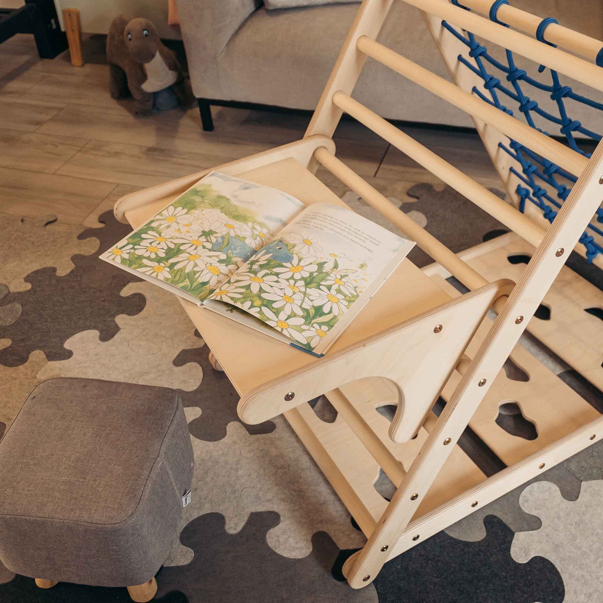 Deze aanbouwtafel is een uitstekende aanvulling op je klimdriehoek.
