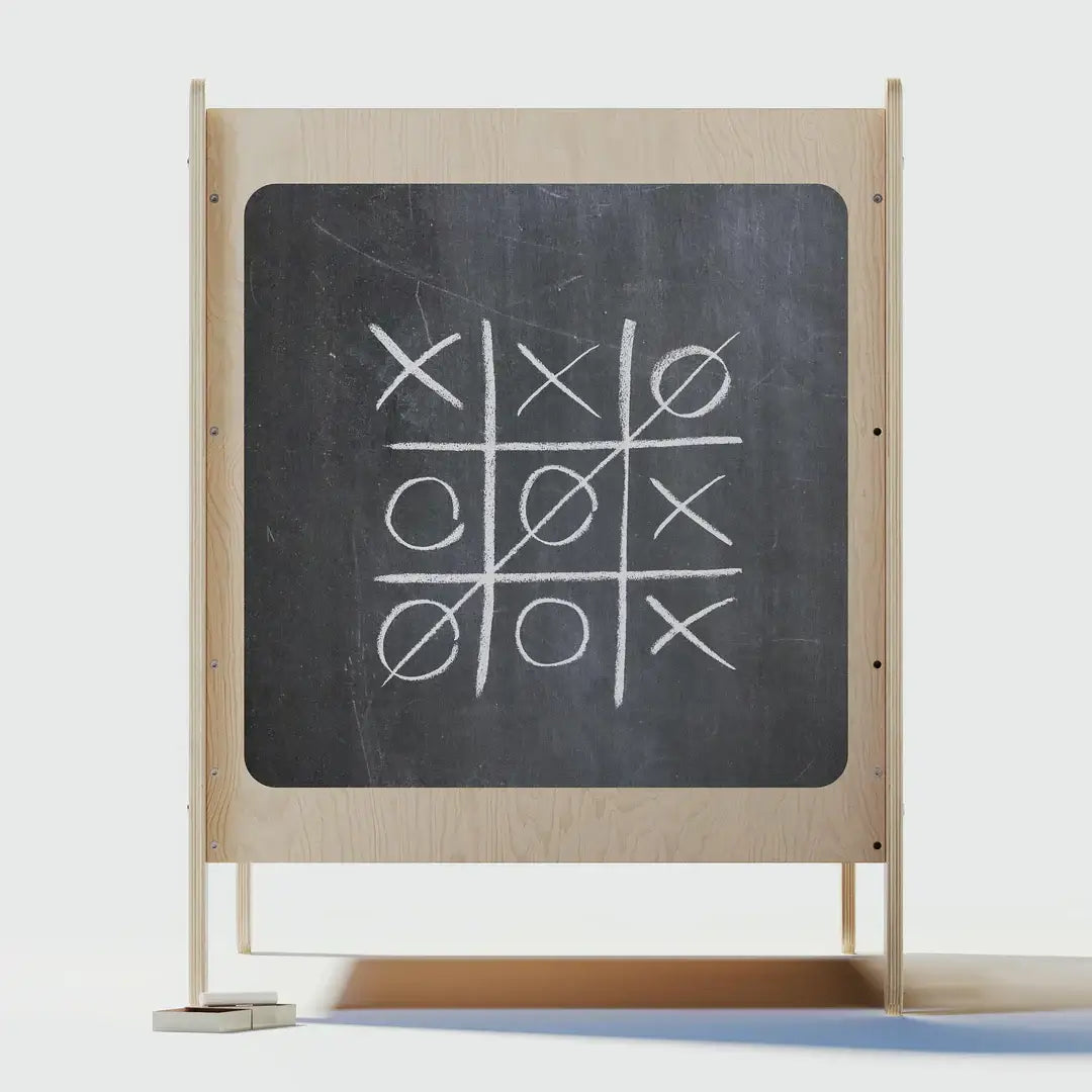 • Die integrierte Kreidetafel auf der gegenüberliegenden Seite lässt Raum für Kreativität – hier können kleine Künstler malen, schreiben oder einfach drauflos kritzeln.