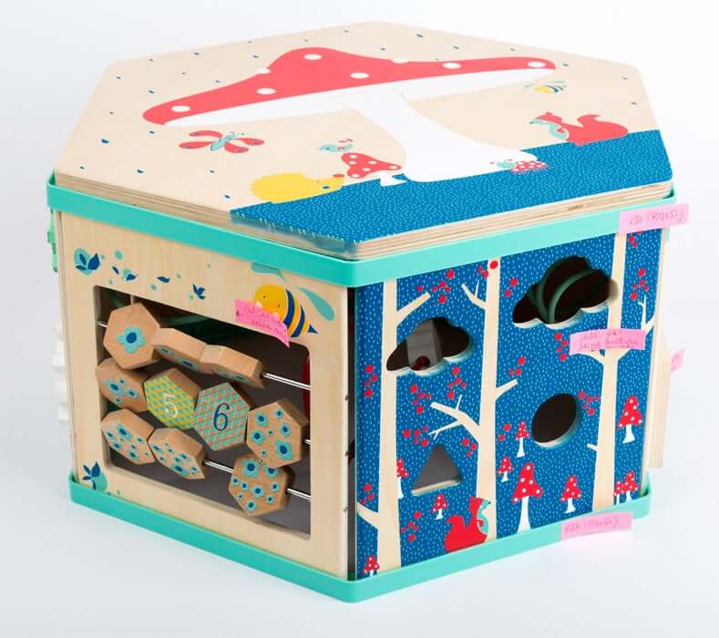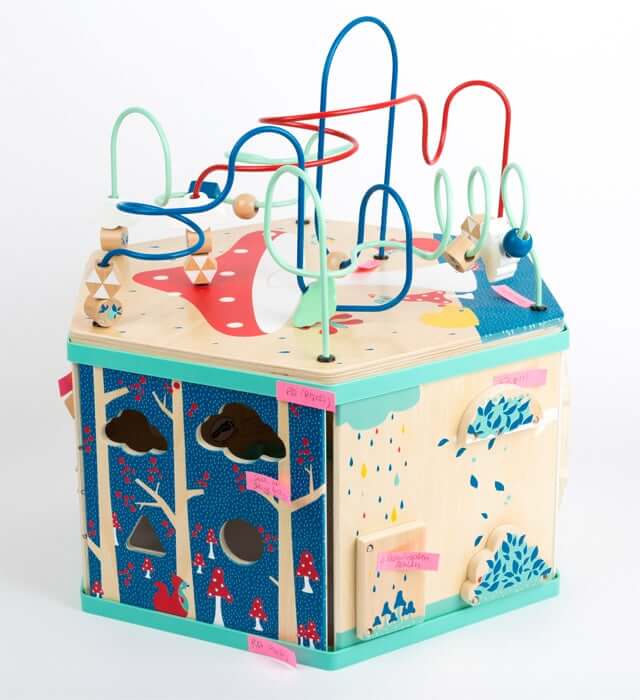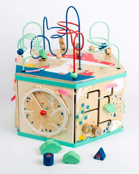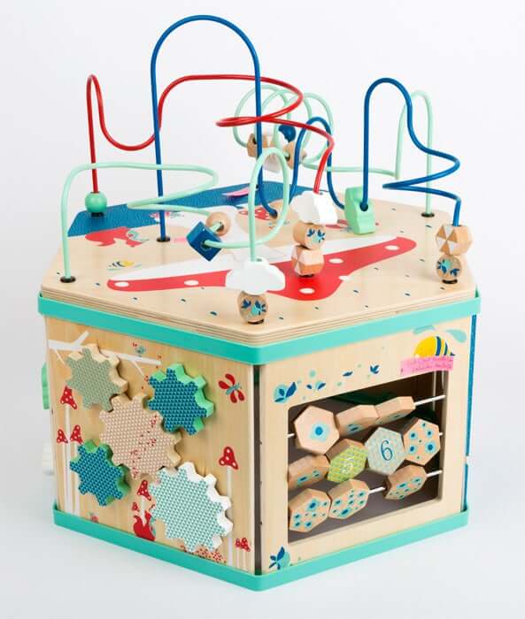 • Het wielspel met versnellingen en een labyrint maakt de wereld van de motoriek compleet.