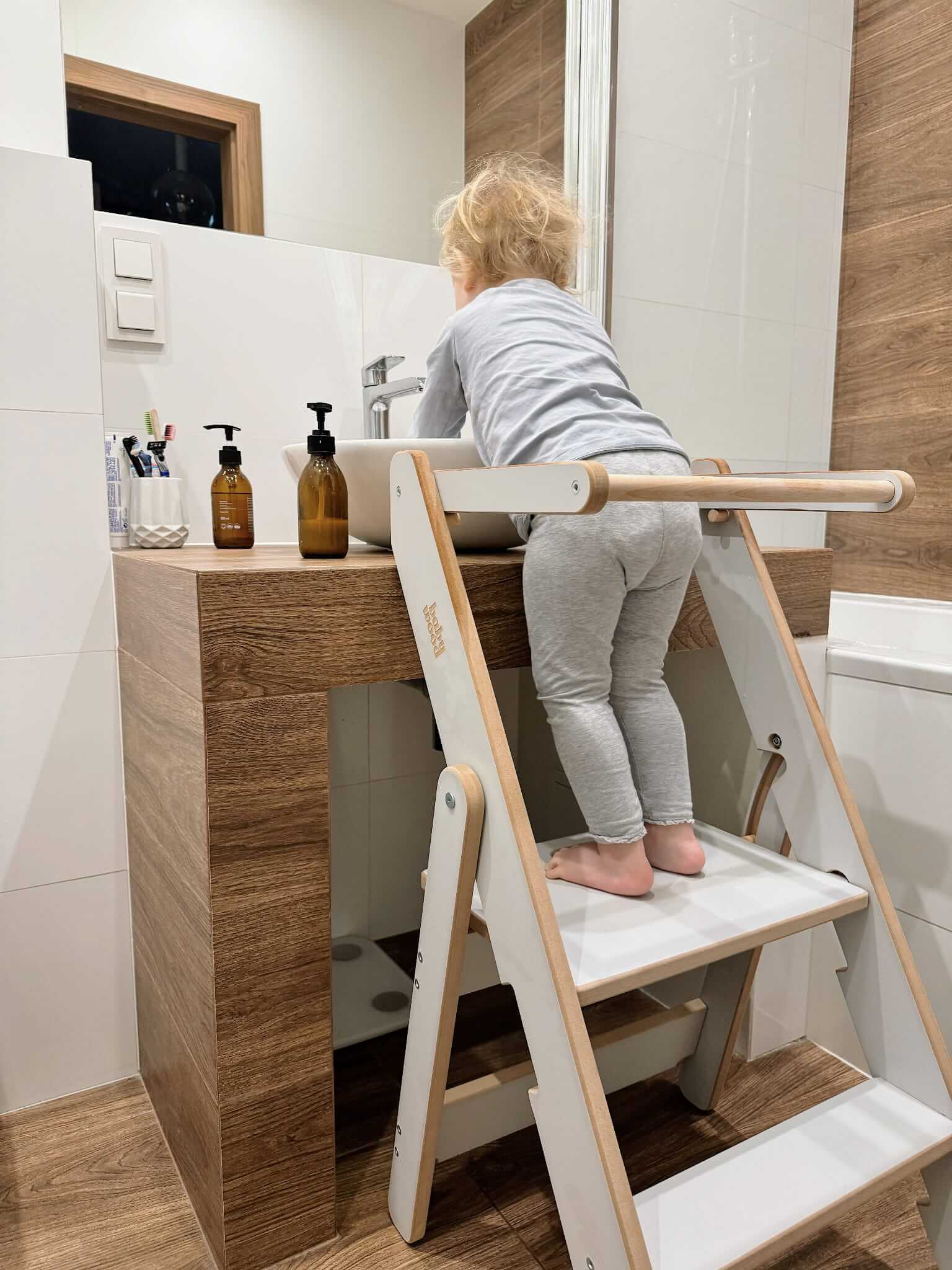 Der faltbare Lernturm bringt dein Kind auf Augenhöhe – nicht nur mit dir, sondern auch mit seinem eigenen Wachstum. Er schenkt Selbstvertrauen, Selbstständigkeit und viele kleine Momente, die ihr nie vergessen werdet. Und wenn er seinen Job getan hat, lässt er sich fast unsichtbar verstauen.