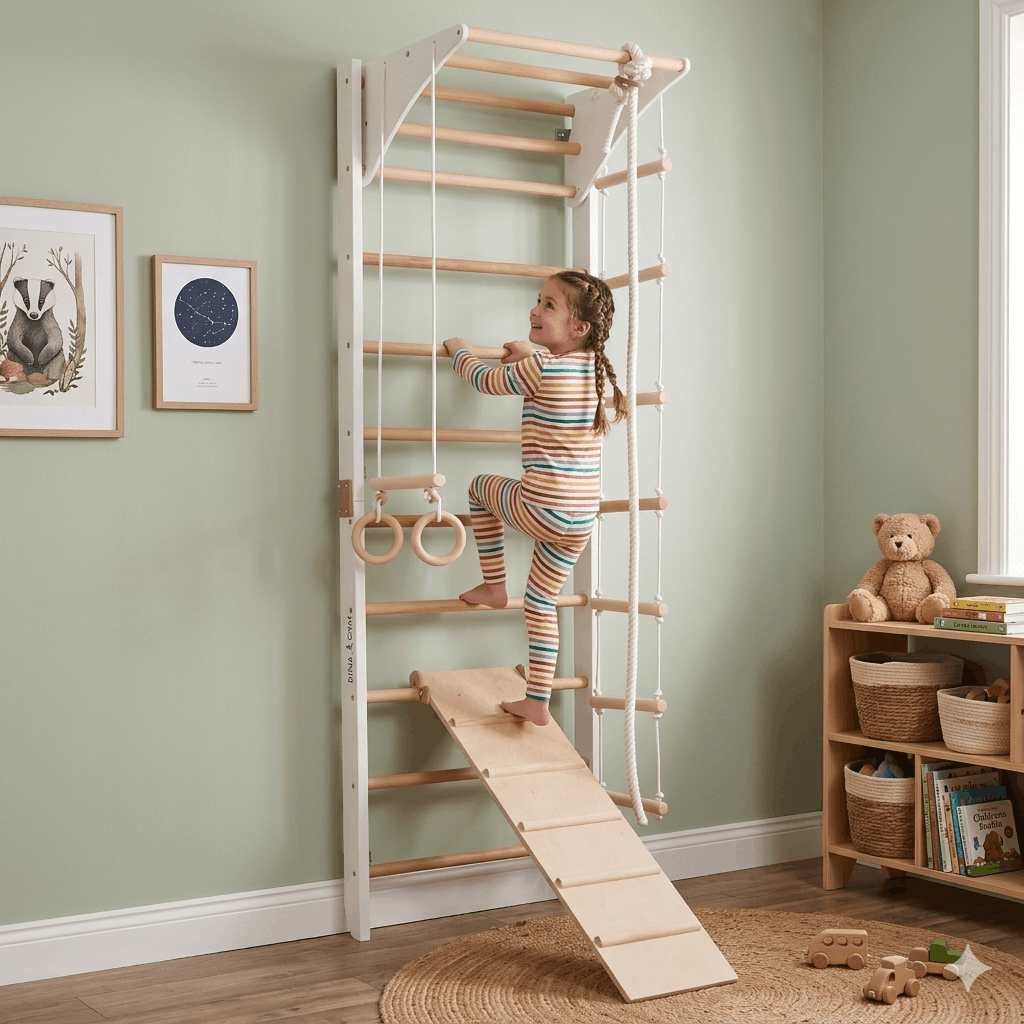 Unsere Kletterwand für Kinder weckt das Spielgefühl deines Kindes, indem es die Spielparks zu dir nach Hause bringt.