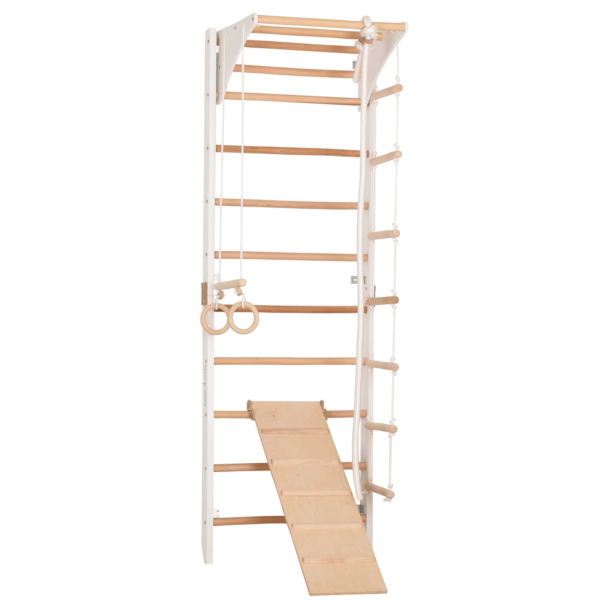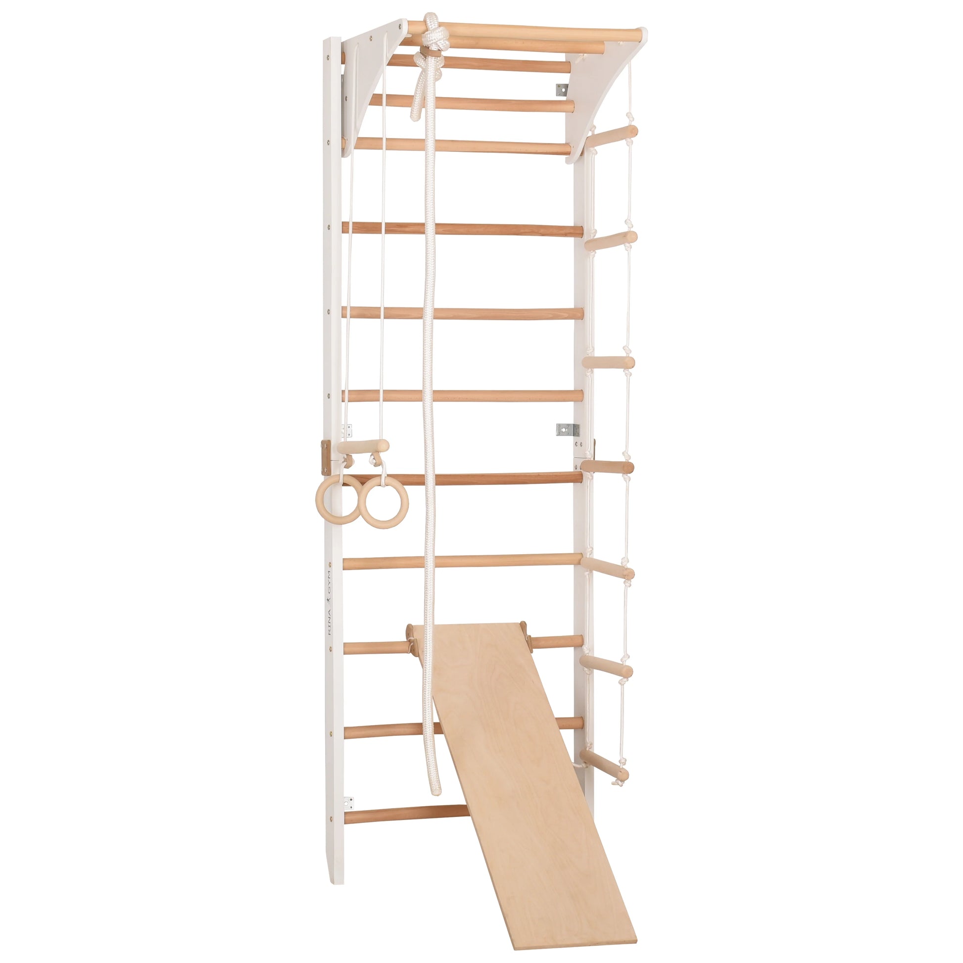 Hinweis: Dieses Produkt ist speziell für körperliche Aktivität entwickelt und kein Spielzeug im Sinne der Richtlinie 2009/48/EG. Das Gerät erfüllt die Anforderungen der europäischen Norm EN 913 für Sportgeräte im privaten Bereich. Jede Komponente wurde statisch geprüft und auf sichere Belastbarkeit getestet. Eine Wandbefestigung wird ausdrücklich empfohlen.