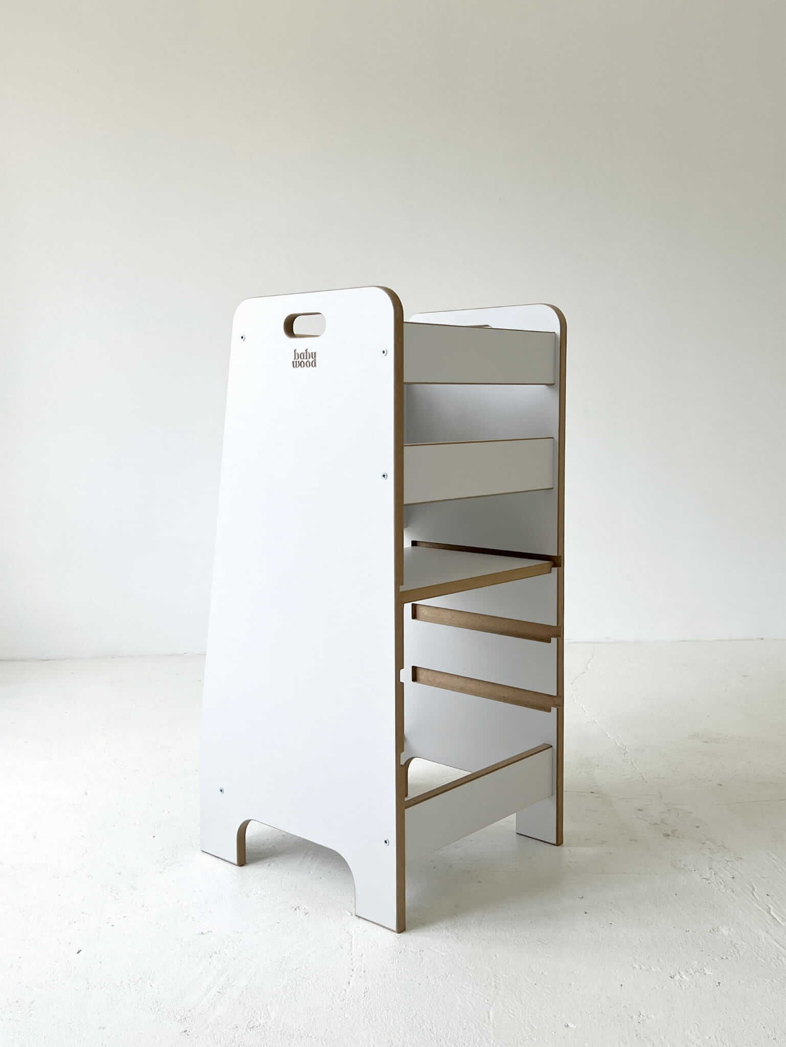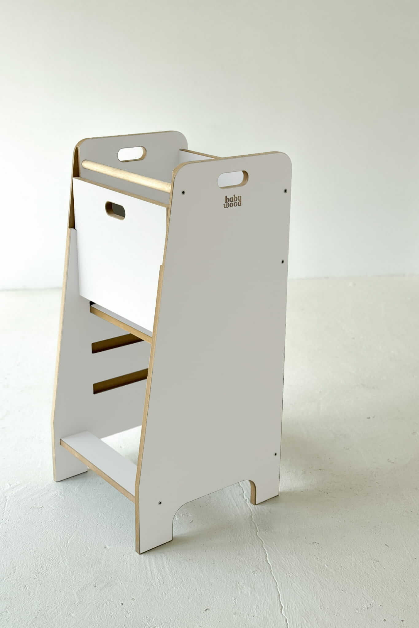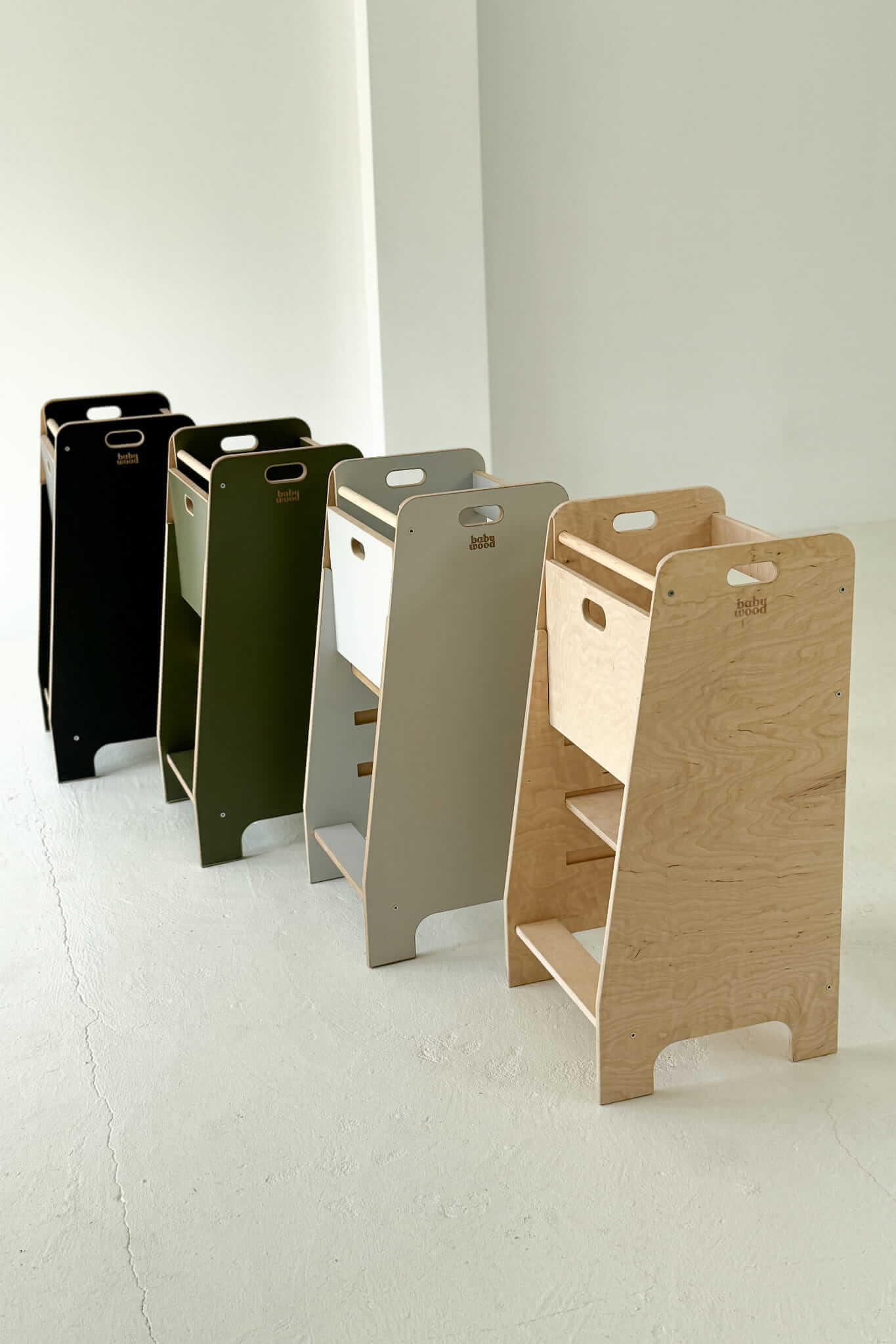 Mit Liebe zum Detail entwickelt, begleitet der Lernturm dein Kind durch die aufregende Phase, in der Selbstständigkeit und Neugier jeden Tag wachsen. Und das Beste: Er fügt sich in wunderschönen Farben – natur, weiß, grau, kaschmir-beige, olivgrün, blau und rosa – perfekt in jede moderne Familienküche ein.