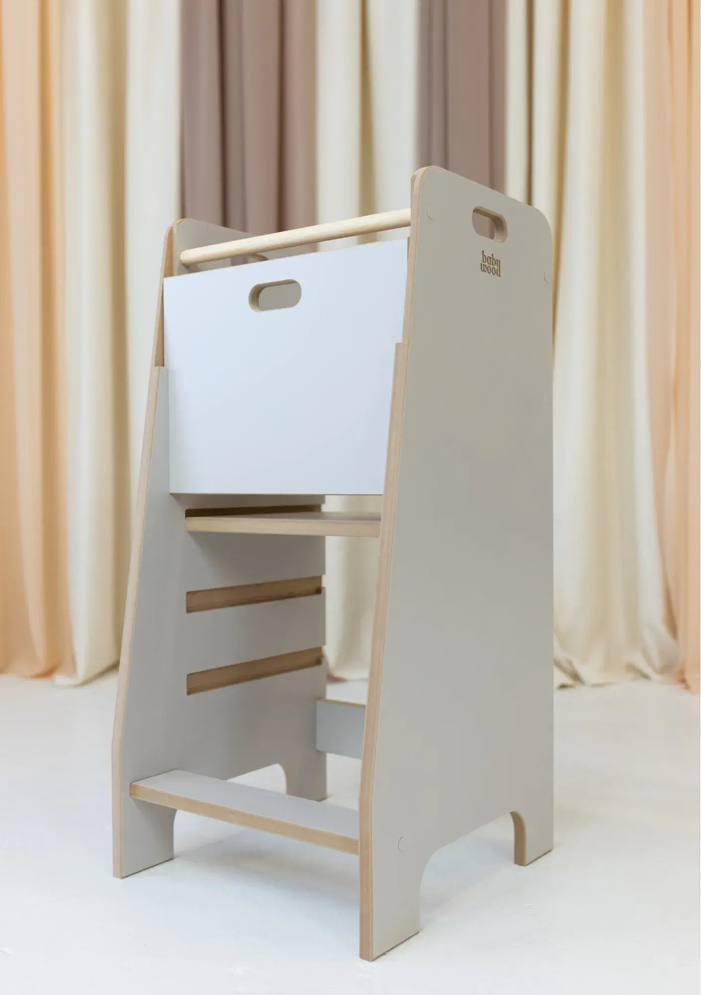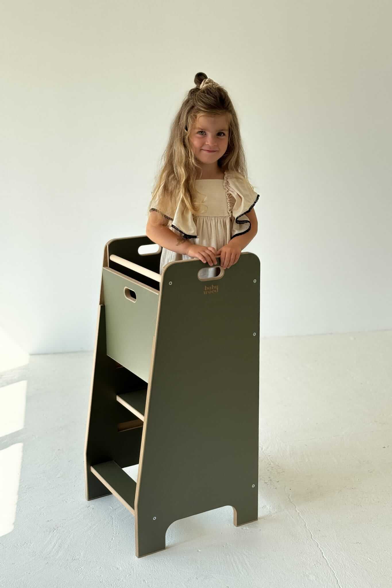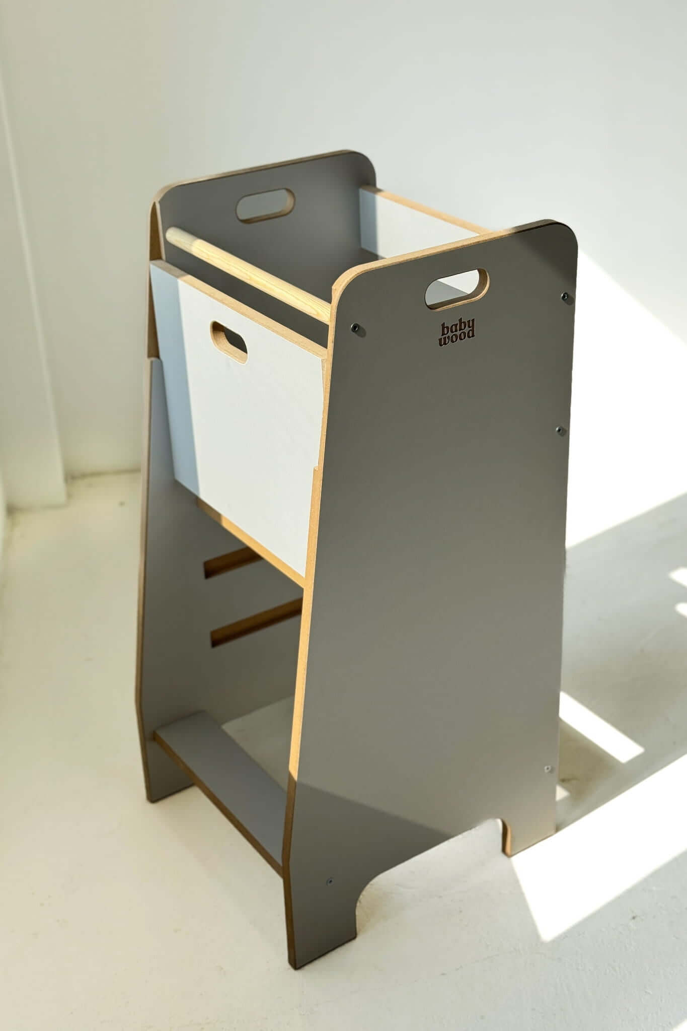 Mit Liebe zum Detail entwickelt, begleitet der Lernturm dein Kind durch die aufregende Phase, in der Selbstständigkeit und Neugier jeden Tag wachsen. Und das Beste: Er fügt sich in wunderschönen Farben – natur, weiß, grau, kaschmir-beige, olivgrün, blau und rosa – perfekt in jede moderne Familienküche ein.