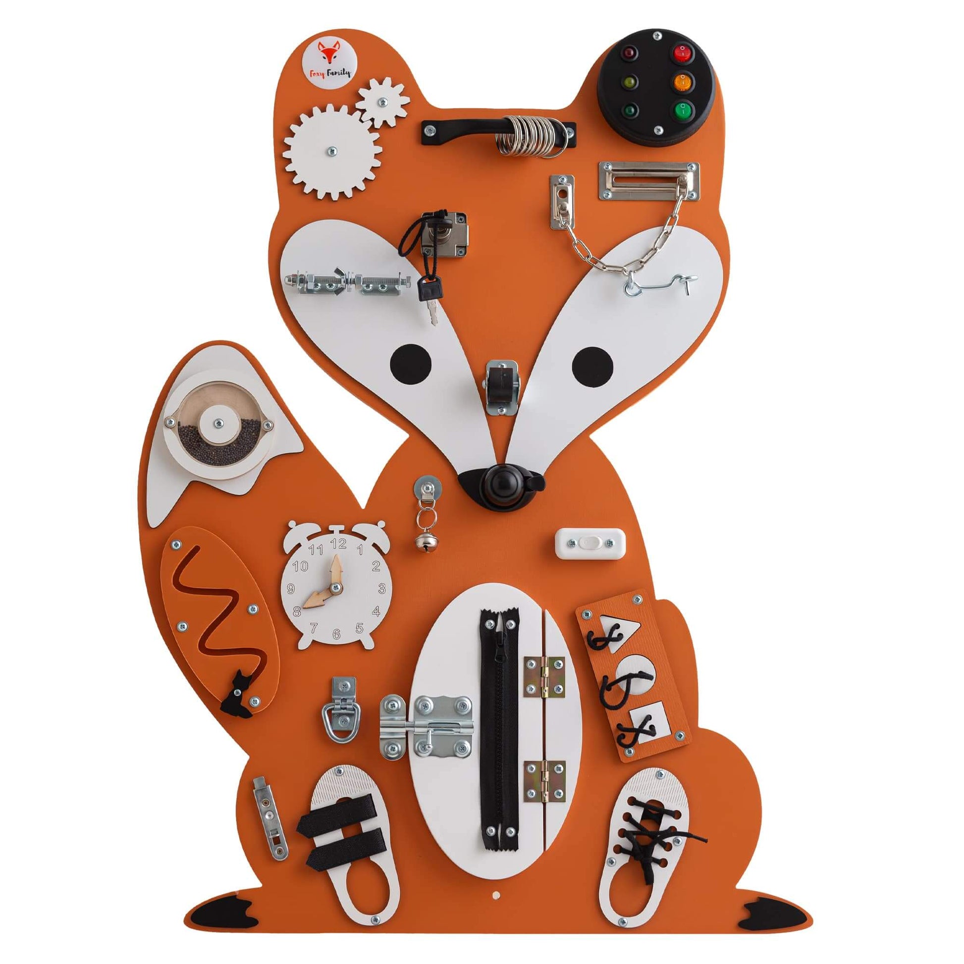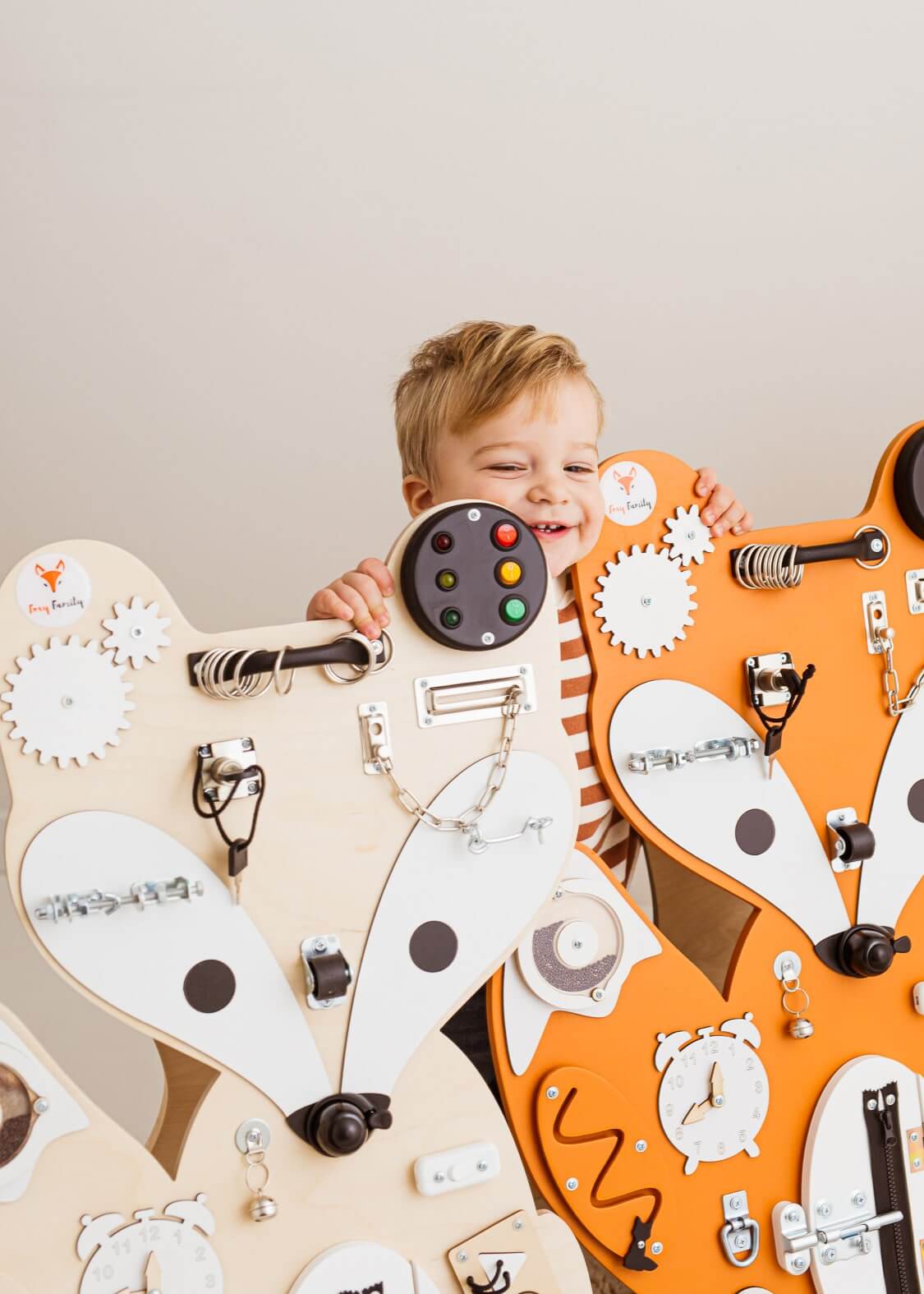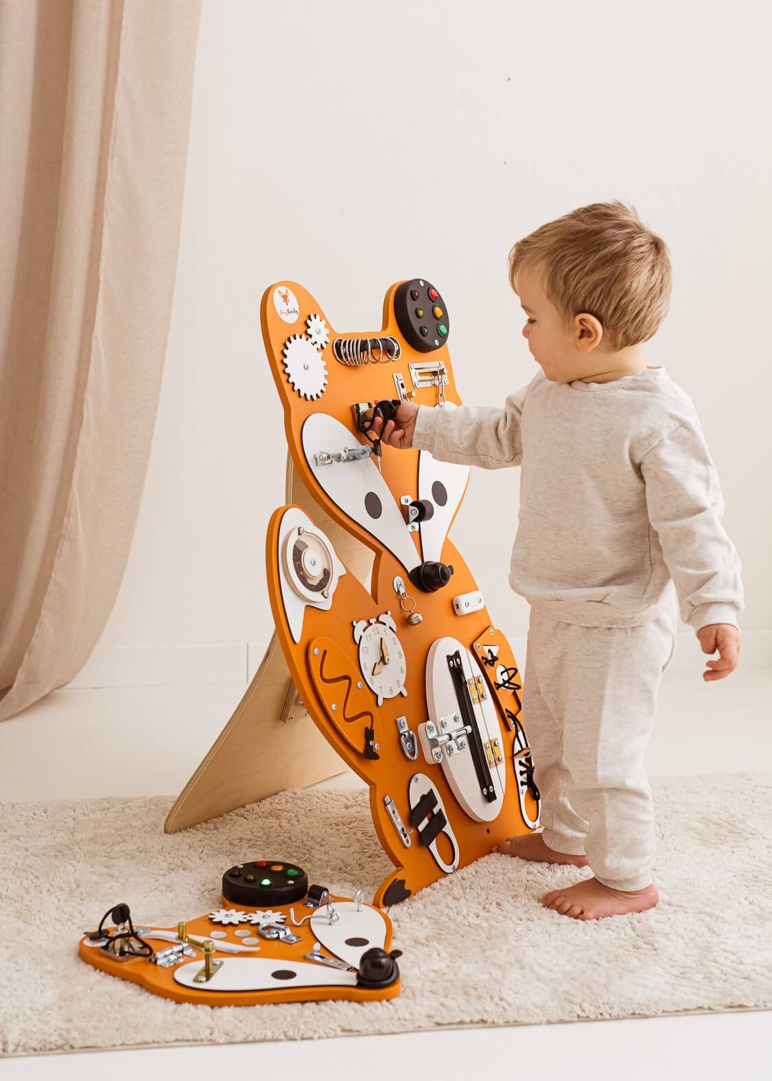 Leon der Fuchs & Leonie die Füchsin sind neugierig, clever und immer in Bewegung – genau wie die kleinen Entdecker, die vor ihm stehen. Mit seinen vielen Elementen laden sie Kinder dazu ein, selbstständig auszuprobieren, zu drehen, zu öffnen, zu schließen und Zusammenhänge zu verstehen. Während kleine Hände konzentriert beschäftigt sind, dürfen Mama und Papa auch mal kurz durchatmen – vielleicht bei einem warmen Kaffee.