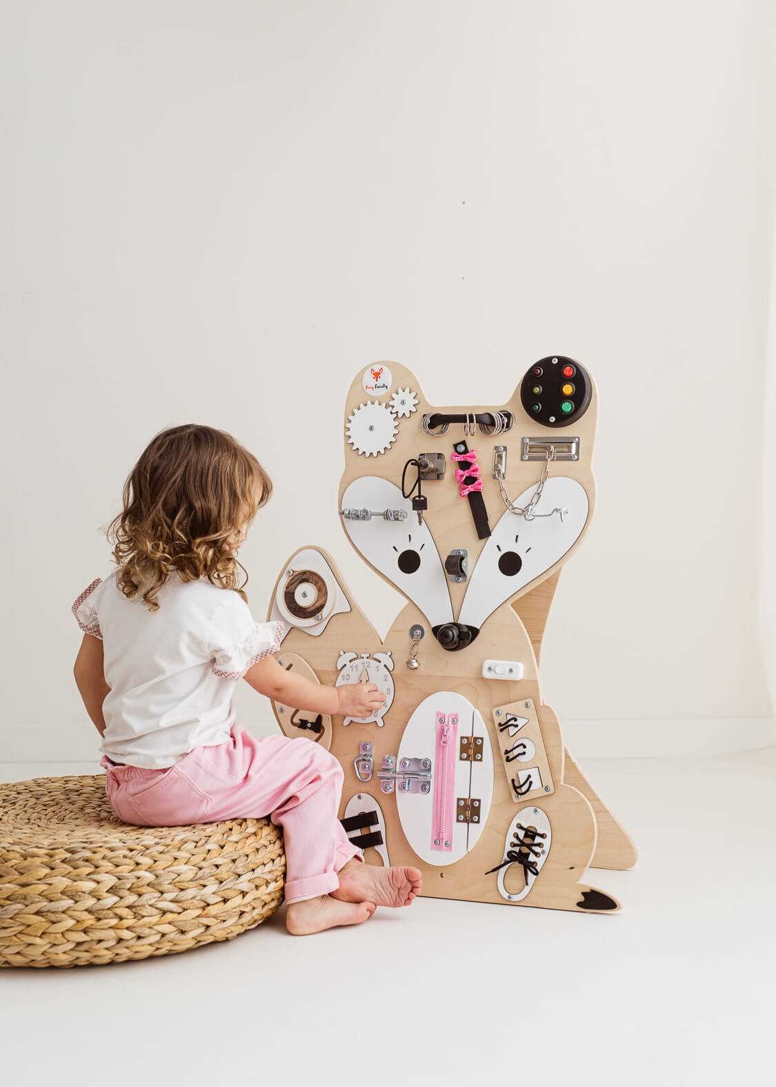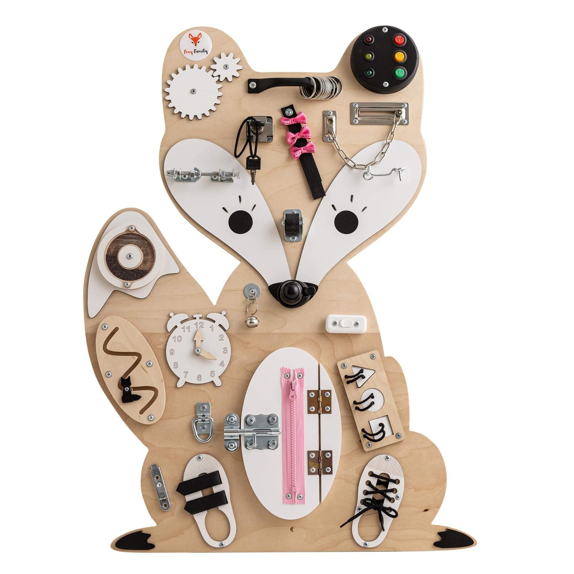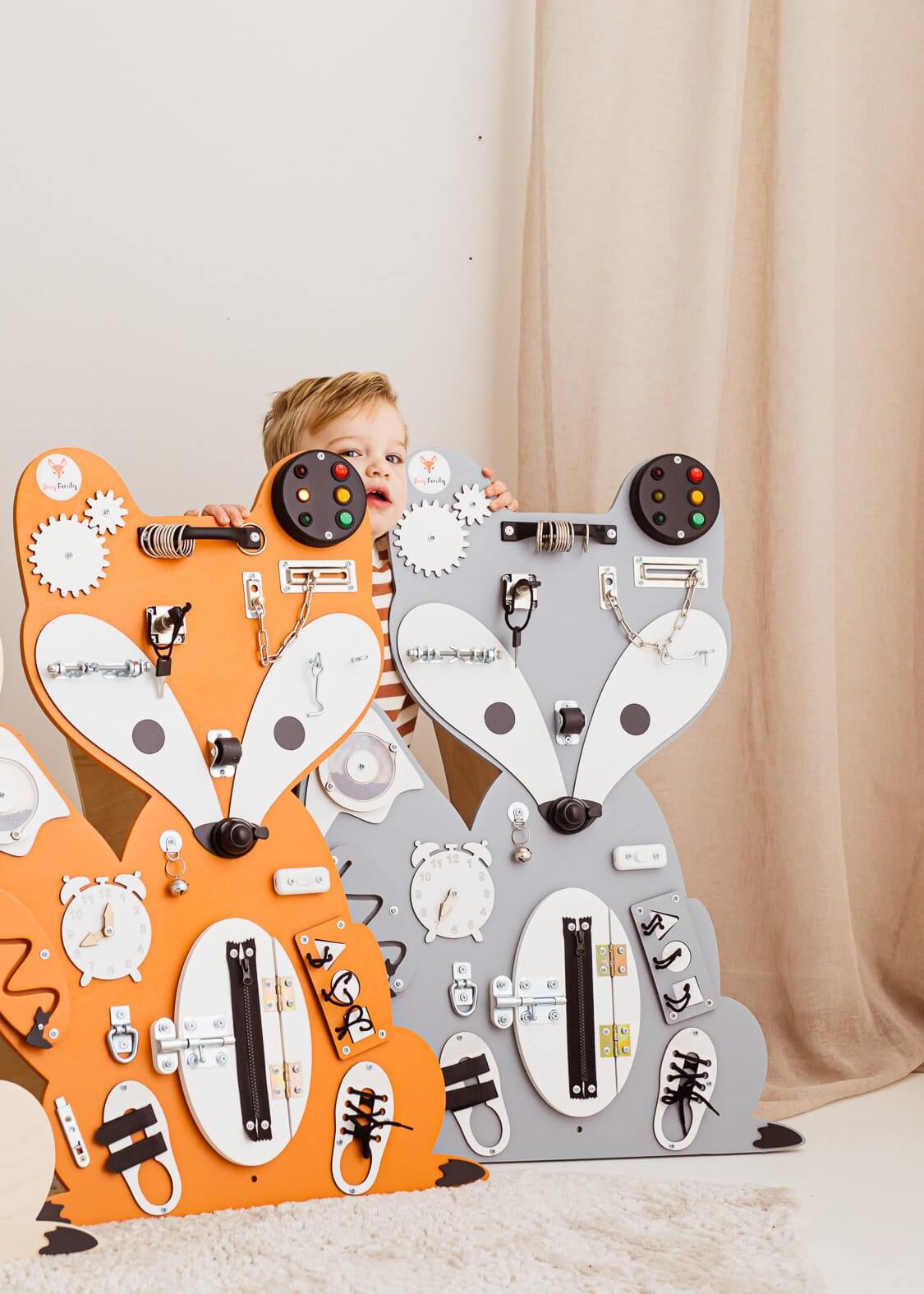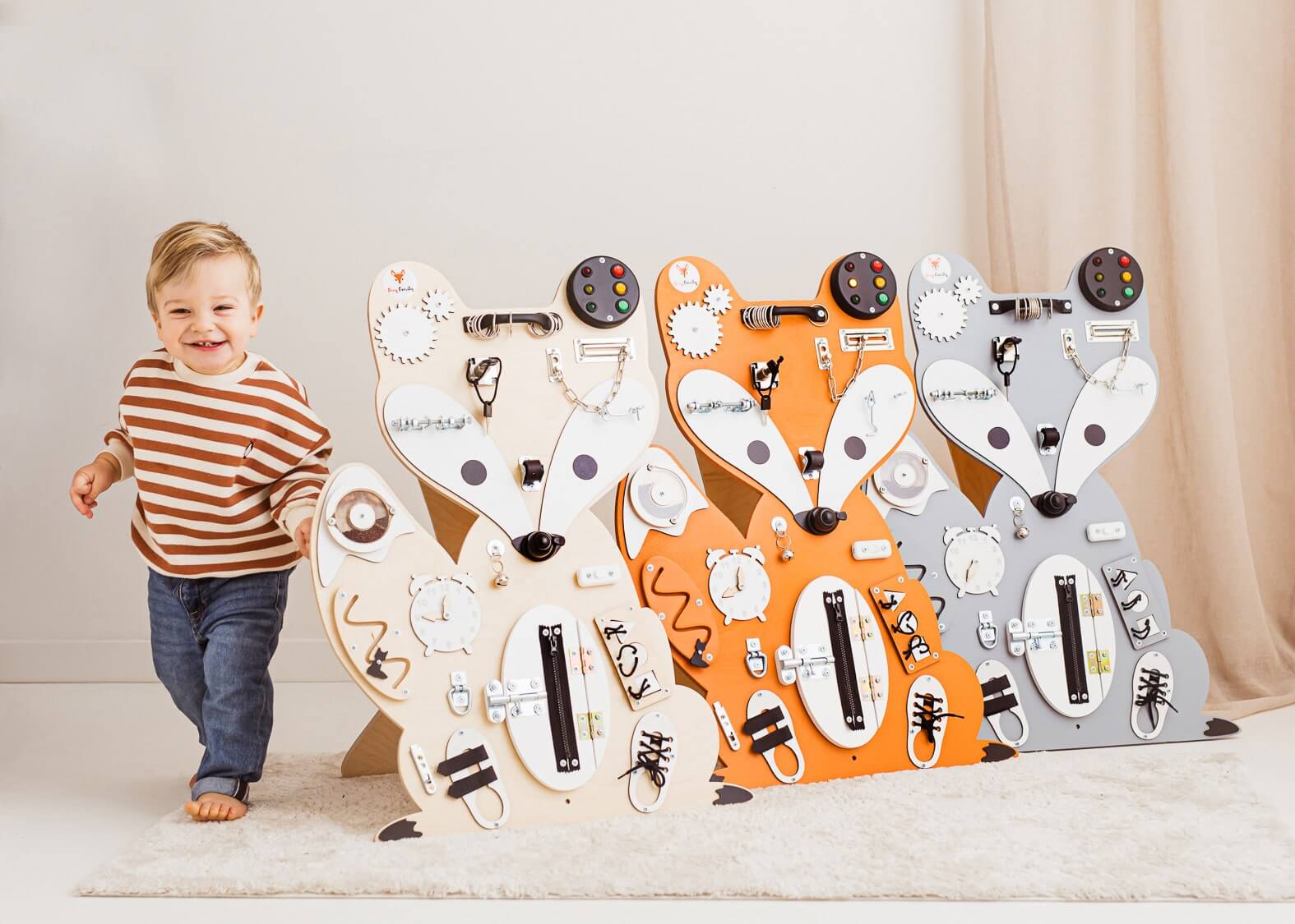 Leon der Fuchs & Leonie die Füchsin sind neugierig, clever und immer in Bewegung – genau wie die kleinen Entdecker, die vor ihm stehen. Mit seinen vielen Elementen laden sie Kinder dazu ein, selbstständig auszuprobieren, zu drehen, zu öffnen, zu schließen und Zusammenhänge zu verstehen. Während kleine Hände konzentriert beschäftigt sind, dürfen Mama und Papa auch mal kurz durchatmen – vielleicht bei einem warmen Kaffee.