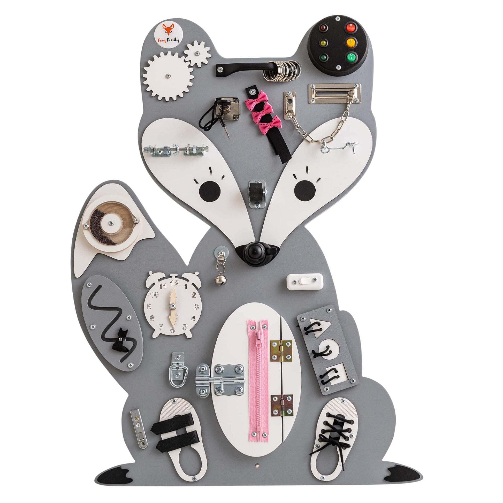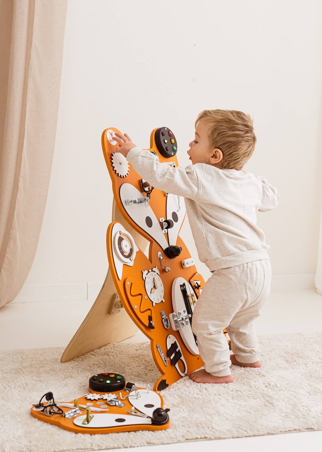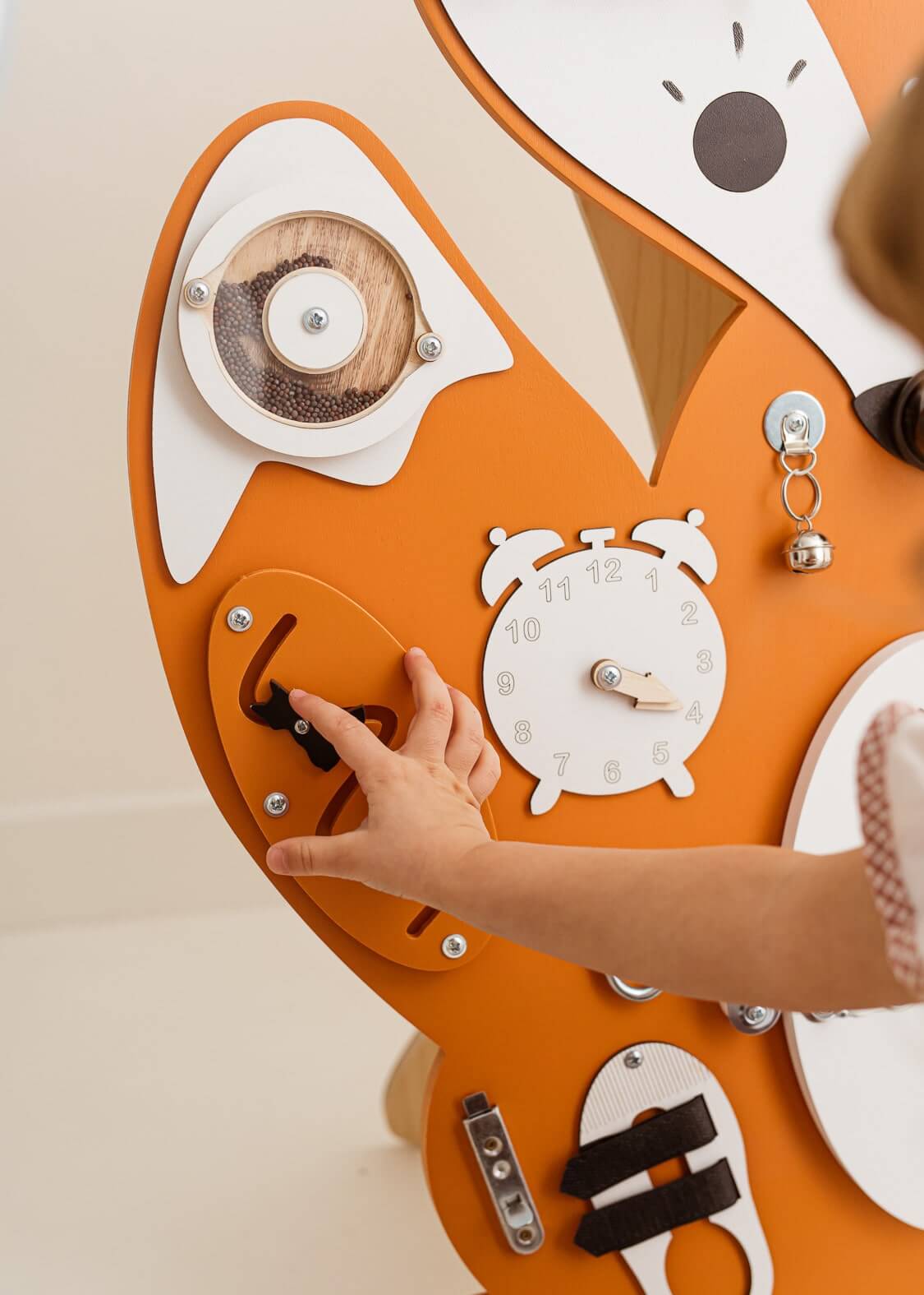 Auf dem großem Motorikboard (82 × 62 cm) warten zahlreiche spannende Funktionen, die Motorik, Konzentration und Alltagskompetenzen fördern: